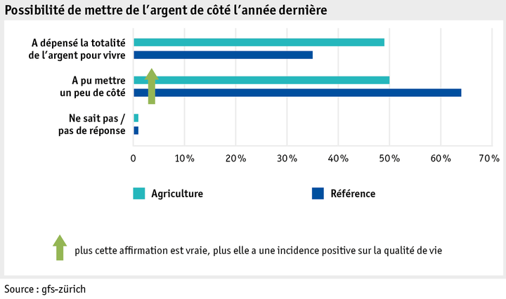 En 2017, la situation financière des milieux paysans était moins bonne que celle de la population de référence. Si plus de la moitié des personnes interrogées ont certes pu mettre de l’argent de côté l’année dernière, la situation de la population de référence est encore meilleure. L’évaluation de la situation financière n’a guère changé depuis seize ans.